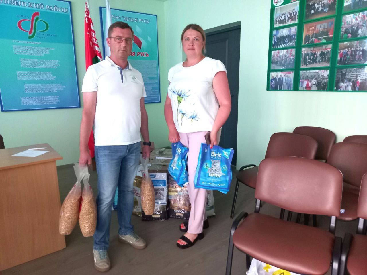 Первичные организации Фрунзенской «Белой Руси» не остались в стороне. Они передали ОО «Эгида» предметы, необходимые питомцам, которые пока не нашли себе хозяев.