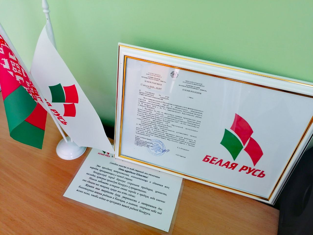 Во время собрания по случаю Дня народного единства учреждению было вручено свидетельство о постановке на учет первичной организации РОО «Белая Русь».