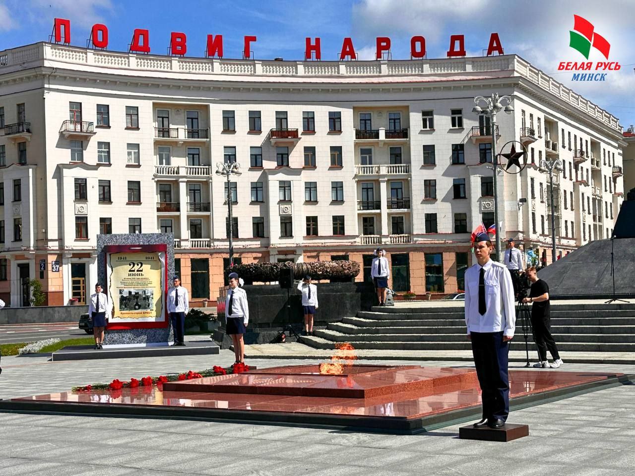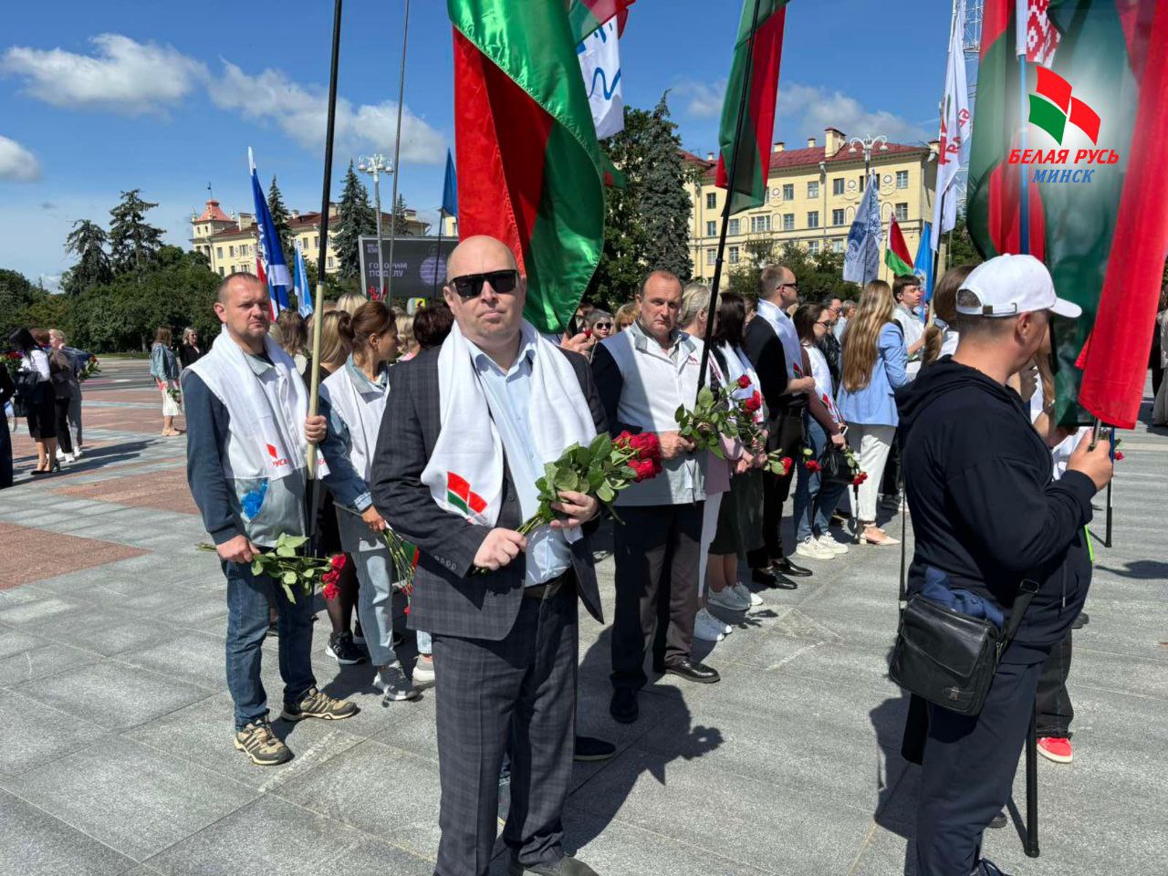 Актив Фрунзенской районной организации г. Минска РОО «Белая Русь» принял участие в церемонии возложения цветов к монументу Победы в рамках городской акции «Календарь и книга памяти», почтив память павших героев минутой молчания.