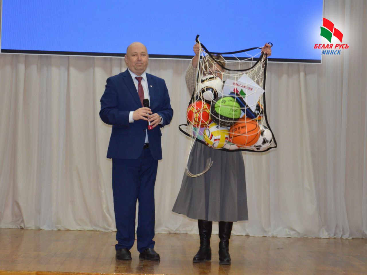 Награждение провёл председатель Фрунзенской «Белой Руси» Игорь Тимашишин. Он вручил победителям ценные призы — новый спортивный инвентарь для школы (мячи, ракетки и др.).