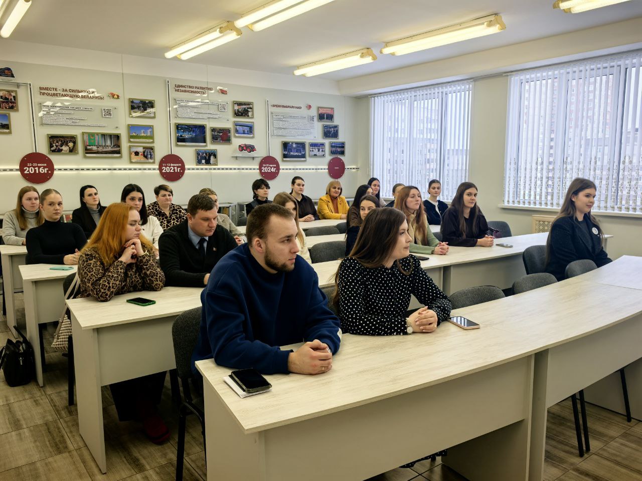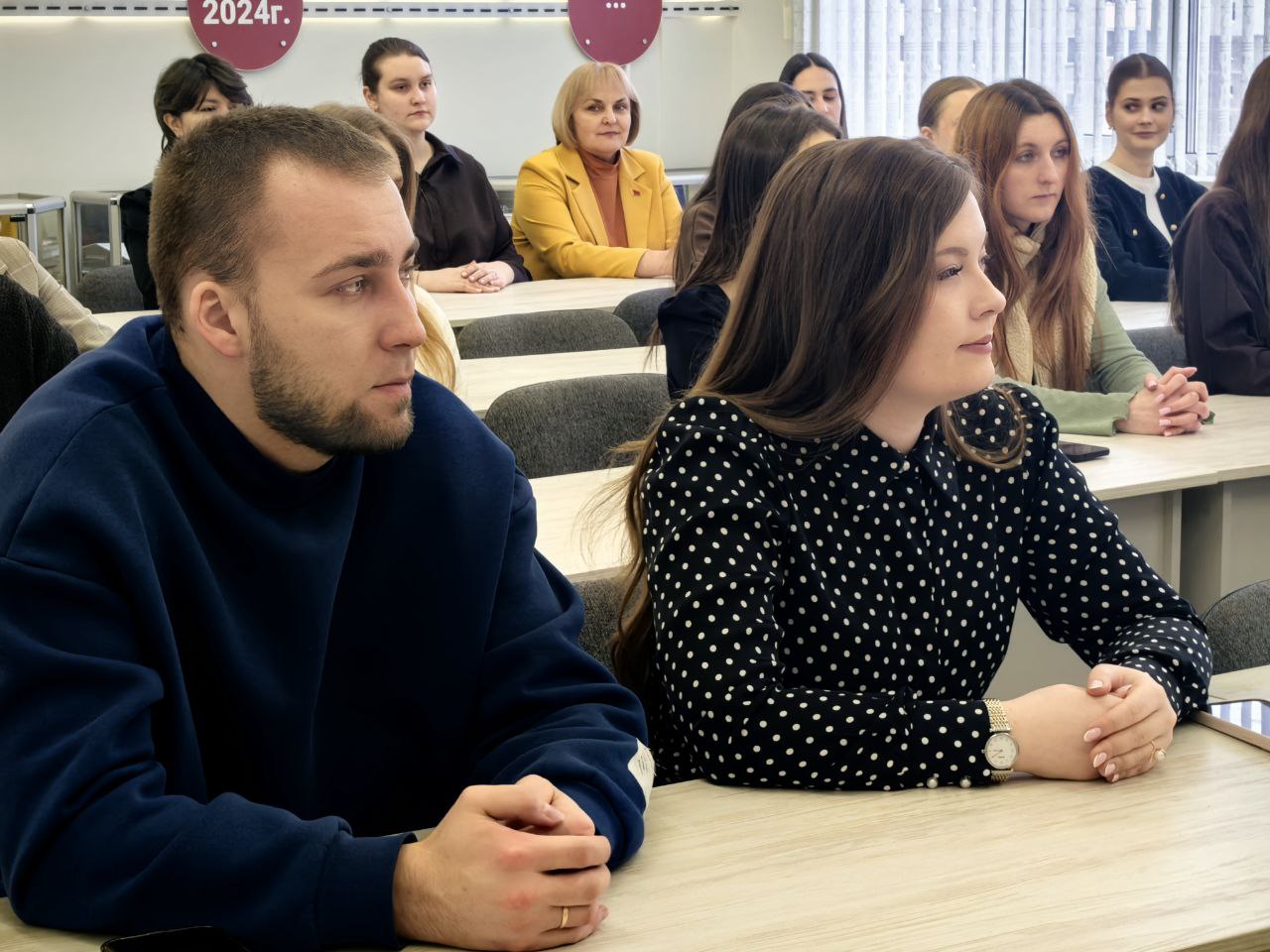 ✔️ В формате живого общения Марина Александровна поделилась с молодыми людьми информацией о сложном процессе работы депутата и значительной ответственности, лежащей на них при утверждении нормативных документов. Ключевой темой встречи стали вопросы, связанные с Всебелорусским народным собранием.