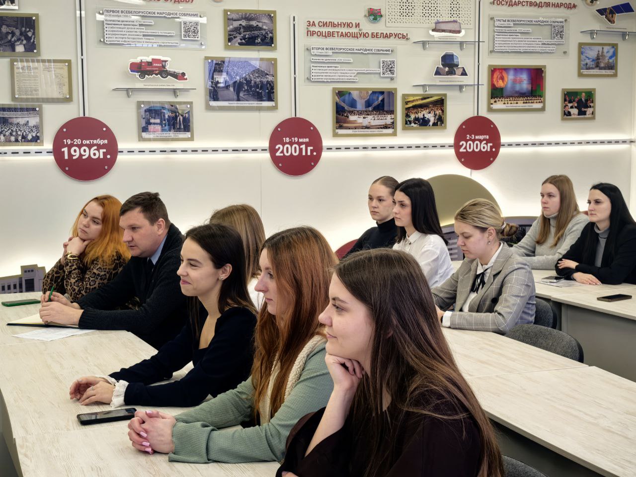 По завершении оживленной дискуссии участники посетили школьный музей, посвященный истории и деятельности Всебелорусского народного собрания.