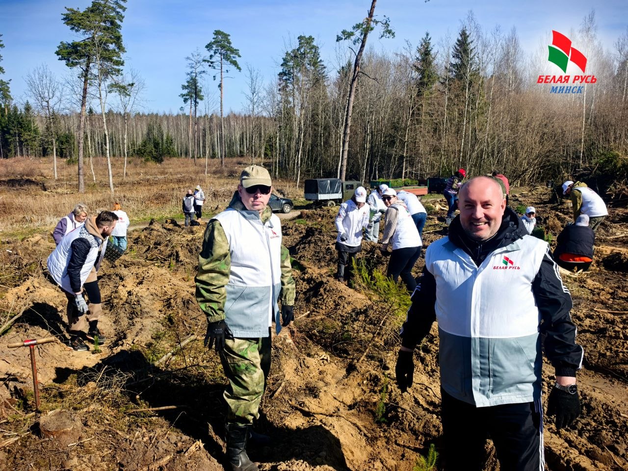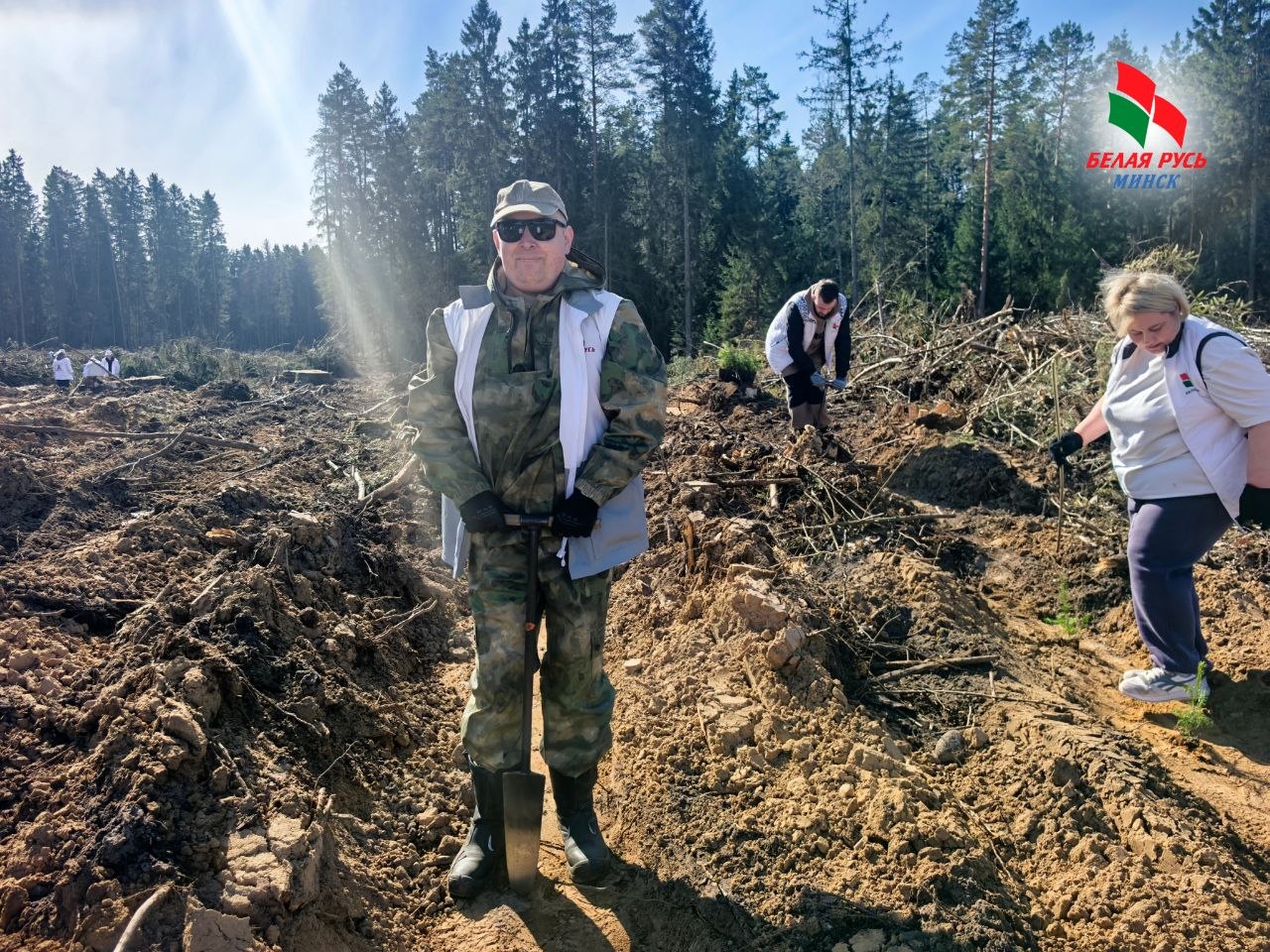Выехали – большой компанией, более 100 человек. Среди нас – активисты Фрунзенской «Белой Руси», представители Республиканского аппарата, Минской городской и Минской областной организаций РОО «Белая Русь». Объединились не для отчёта, а для дела. Для будущего. Для леса, который через годы будет радовать новые поколения.