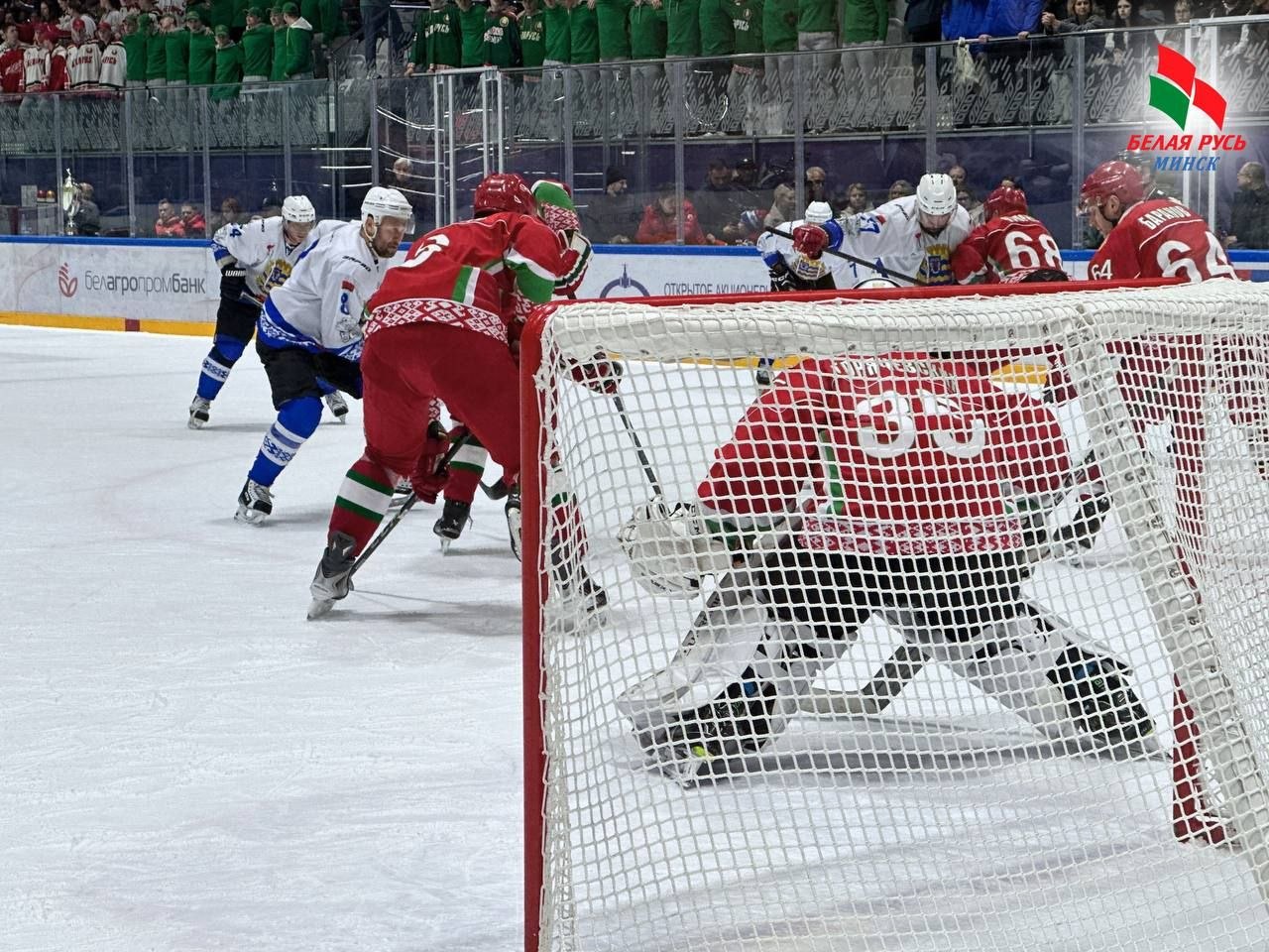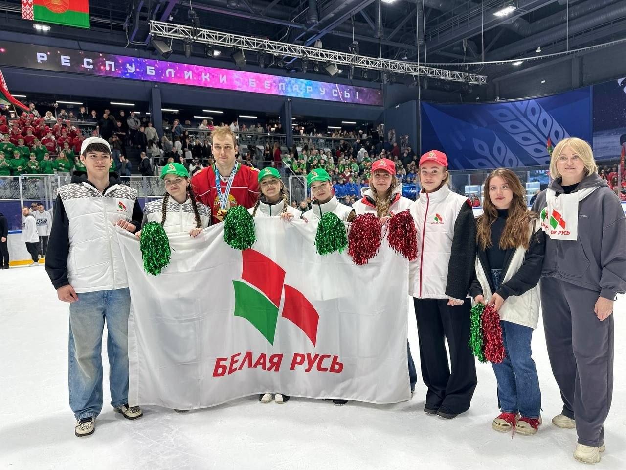 Активисты Фрунзенской «Белой Руси» вместе с болельщиками со всей страны поддерживали так, что, кажется, лёд плавился.