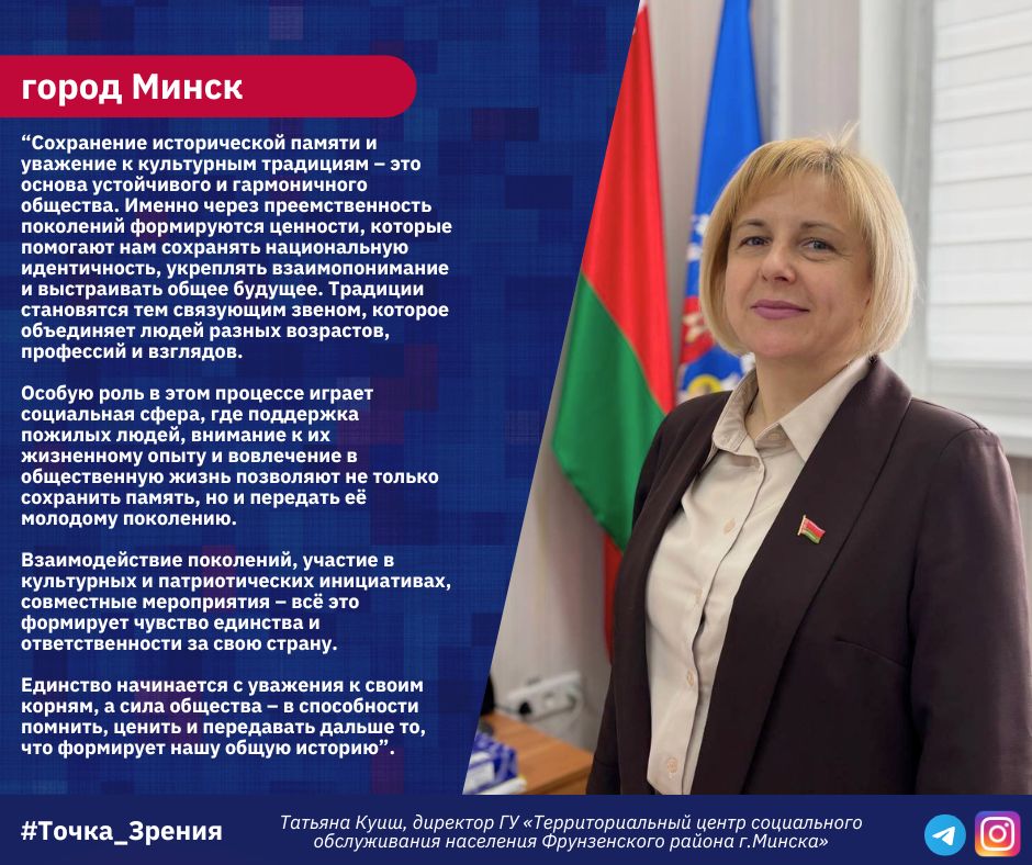 Татьяна Куиш, директор ГУ «Территориальный центр социального обслуживания населения Фрунзенского района г.Минска», поделилась мнением на тему «Единство в традициях, сила в памяти».
