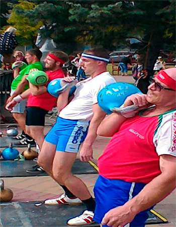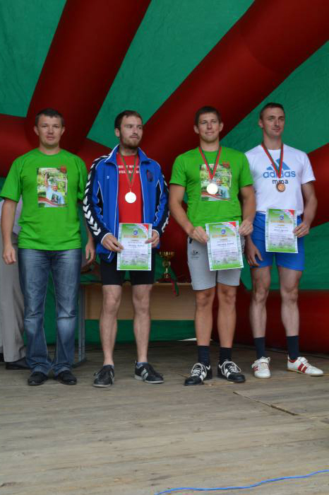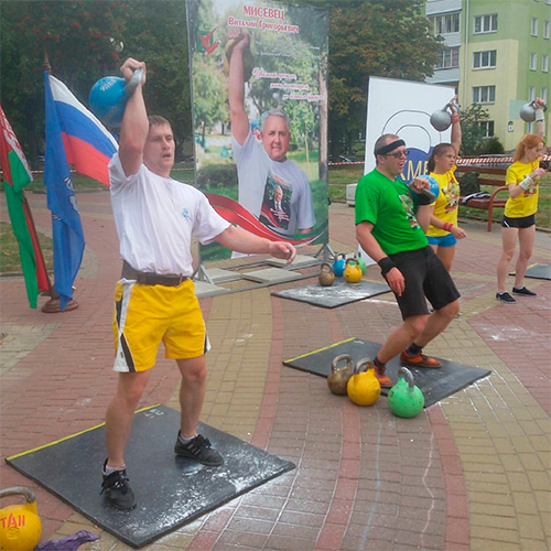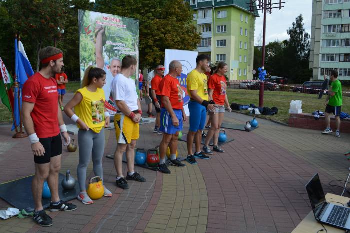 На данный вид были заявлены 3 команды: клуб гиревого спорта «Асiлак» (Минск), сборная команда Беларуси «Неоспоримые» и Белорусско-российский тандем «Белрос». Команды порадовали зрителей острой борьбой и волей к победе, однако чуточку лучшими стала команда клуба «Асiлак», серебро и бронзу разделили «Неоспоримые» и «Белрос».