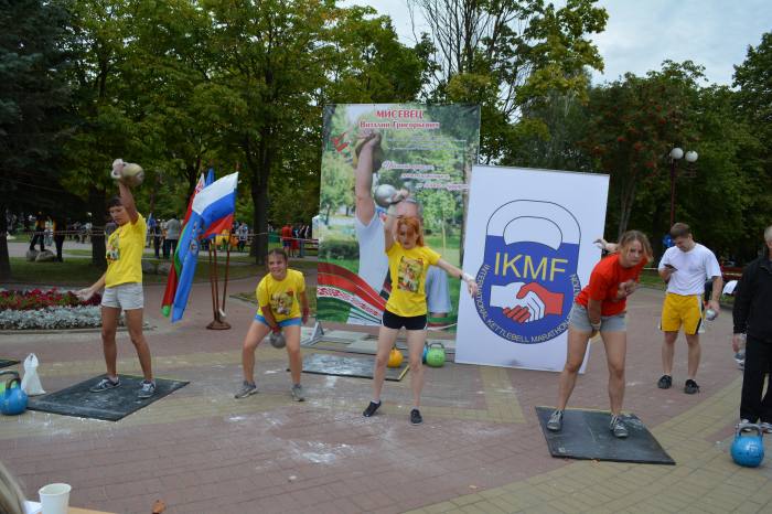 Отдельно хотелось бы отметить представительниц прекрасного пола. В упражнении рывок гири в течении 30 минут, развернулась острая борьба между Дарьей Шендриковой (Бобруйск) и Анной Ковтной (Светлогорск). Девушки держали в напряжении болельщиков все полчаса, так как пальма первенства переходила от одной к другой спортсменке. Всего 2 подъёма решили судьбу золотой медали. На этот раз Дарья стала первой с результатом 663 подъёма.