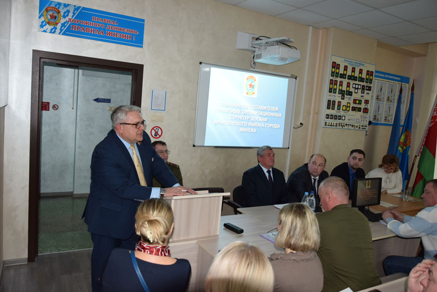 Депутат отметил большой вклад районной организации ДОСААФ в развитие гражданского общества, в военно-патриотическое воспитание молодежи, большую работу во взаимодействии с районными структурами общественных объединений и политических партий района, особенно с «Белой Русью», районной властью, учреждениями образования района, роль, место и значимость совместно проводимых мероприятий. Имея большой опыт работы с общественными организациями, депутат Мисевец дал высокую оценку деятельности  организации, выразил надежду на дальнейшее сотрудничество в проведении автомотоагитпробегов, автомногоборья, дальнейшем развитии технических видов спорта в районе: стрелковому, авиа-, авто-, судо-, ракетомоделировании, пообещал и впредь оказывать всяческое содействие как районному ДОСААФу, так и администрации района, учреждениям образования в продвижении имиджа и авторитета Фрунзенского района и его граждан.
