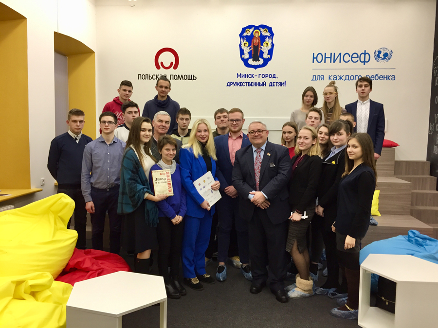 В преддверии выборов в Местные Советы ребятам было особенно интересно пообщаться с человеком, прошедшим все ступени становления народного депутата. По мнению молодежи Виталий Григорьевич оказался приятным и открытым собеседником, который на одной волне с молодым поколением. За время беседы гость и ребята успели затронуть абсолютно разные вопросы, начиная с личных качеств депутата Мисевца, планирования рабочего времени, вопросов формирования программы кандидата в депутаты, обсуждаемых в Парламенте законопроектов, личного отношения к процессам, происходящих в стране, в столице, возможности повлиять на белорусский электорат, акцентирование внимания на активность молодежи до вопроса создания арт-объектов в городе, посредством рисунка в стиле граффити. Во время мероприятия Виталий Григорьевич презентовал книгу, посвященную 100-летию со дня рождения выдающегося политического и общественного деятеля Петра Мироновича Машерова и подарил ее Лиге. В свою очередь ребята поблагодарили гостя и не оставили его без памятного подарка.
