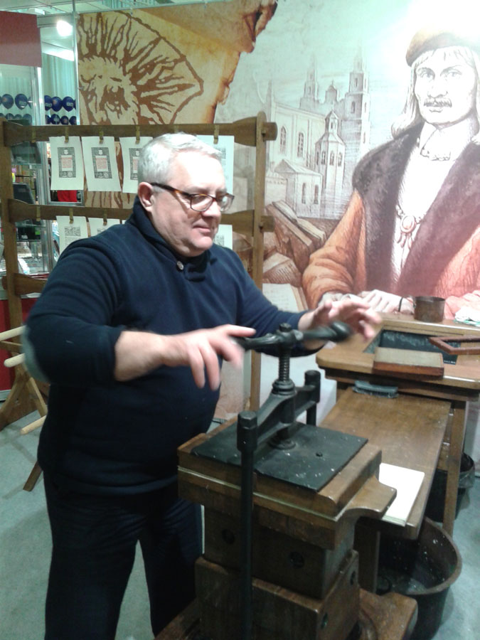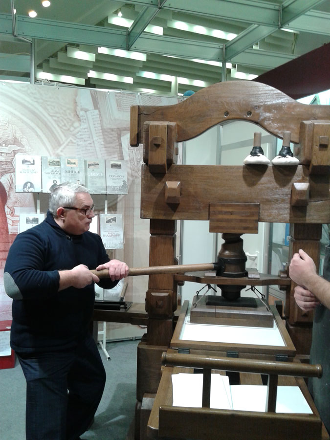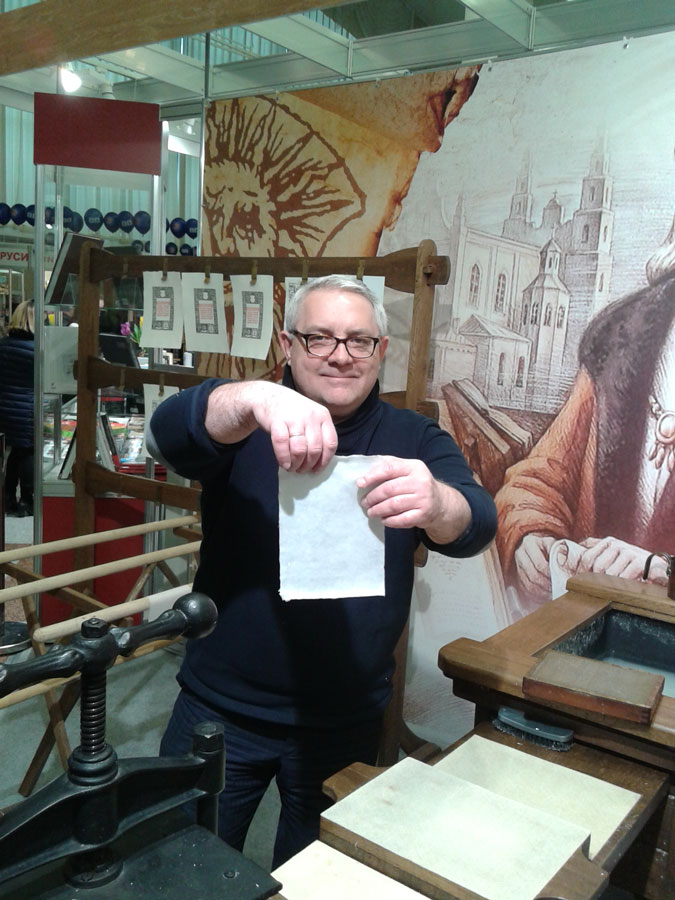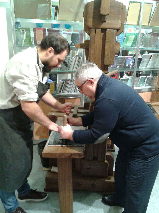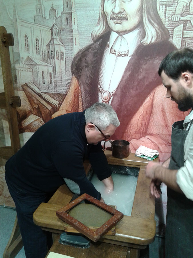 Кроме этого, депутат посетил «Печатный двор», где самостоятельно изготовил бумагу и напечатал лист Библии Франциска Скорины на станке XVI века.