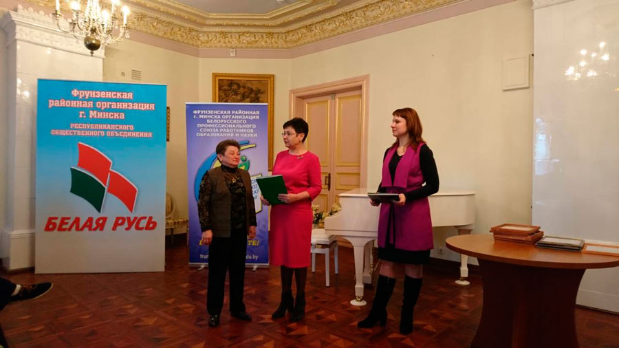 Заместитель председателя Минского городского объединения профсоюзов Щекович А.В. и член Президиума Совета Фрунзенской районной организации г.Минска РОО «Белая Русь» Чуприс Н.В. вручили грамоты и ценные подарки.