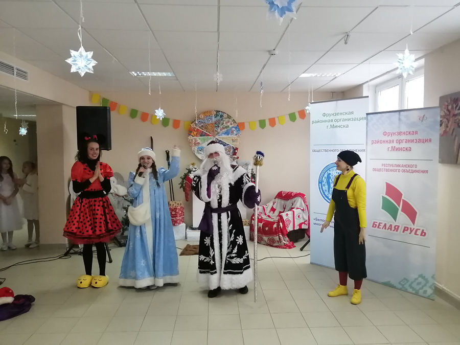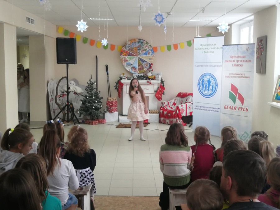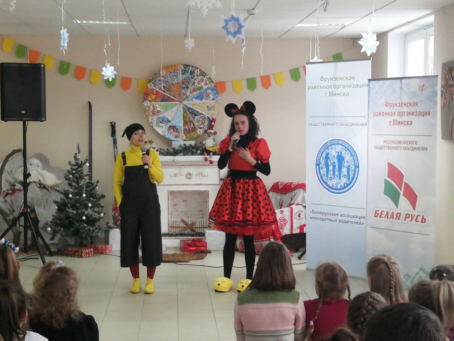 Фрунзенской районной организацией г.Минска РОО «Белая Русь», Фрунзенской районной организацией г.Минска Общественного объединения «Белорусская ассоциация многодетных родителей» в ГУО «Центр дополнительного образования детей и молодёжи «Эврика» Фрунзенского района г.Минска» 27 декабря 2019 года была организована праздничная новогодняя программа «Приключения в Новый год» для детей из многодетных семей.
