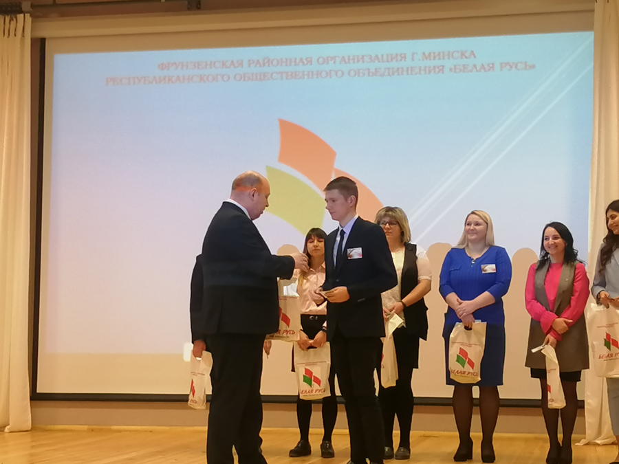 От Фрунзенской районной организации г.Минска РОО «Белая Русь» на память о торжественном событии всем вручены сувениры с символикой  общественного объединения.