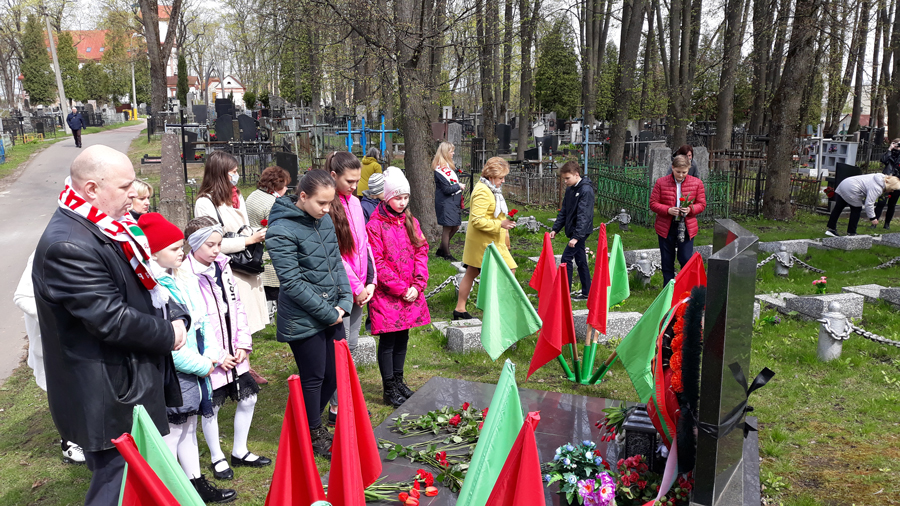 В канун священного праздника - 76-летия Победы советского народа в Великой Отечественной войне представители первичных организаций РОО «Белая Русь» и учащиеся школ № 99, 96, 16, 127,157,159 г.Минска провели митинги памяти и возложили живые цветы к подножию памятника дважды Герою Советского Союза маршалу И.И.Якубовскому и могилам неизвестных солдат на Кальварийском кладбище.