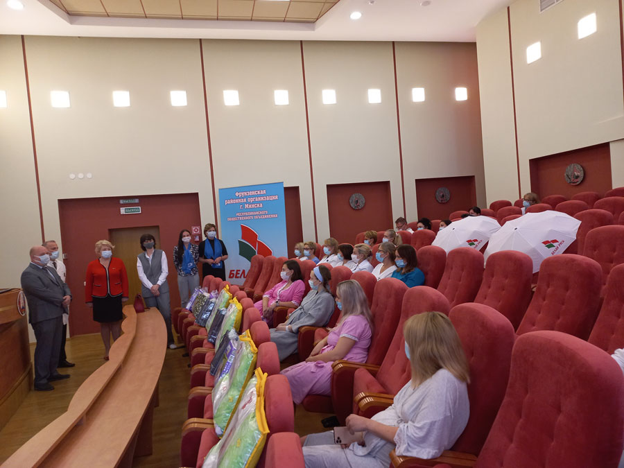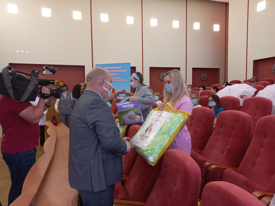 Председатель Фрунзенской «Белой Руси» Игорь Тимашишин пожелал женщинам и их новорождённым малышам крепкого здоровья и семейного благополучия. «Ваши малыши родились в свободной, суверенной и мирной стране, где забота о детях – одно их приоритетных направлений её развития. Уверен, что каждый из новорожденных малышей вырастит достойным гражданином своей Родины, настоящим патриотом и защитником», - отметил Игорь Валентинович и вручил подарки: набор постельных принадлежностей для новорождённых.