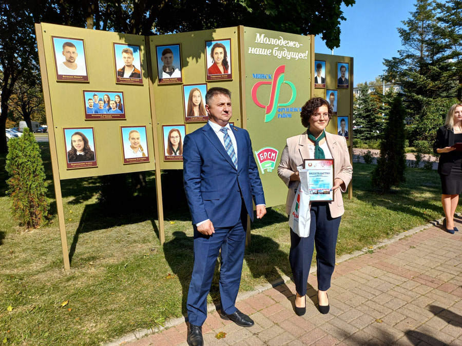 В преддверии праздника Дня города Минска, 10 сентября, двадцать новых имен появилось на Доске молодёжной славы Фрунзенского района. Здесь врачи, строители, студенты, учащиеся, спортсмены, творческие люди.