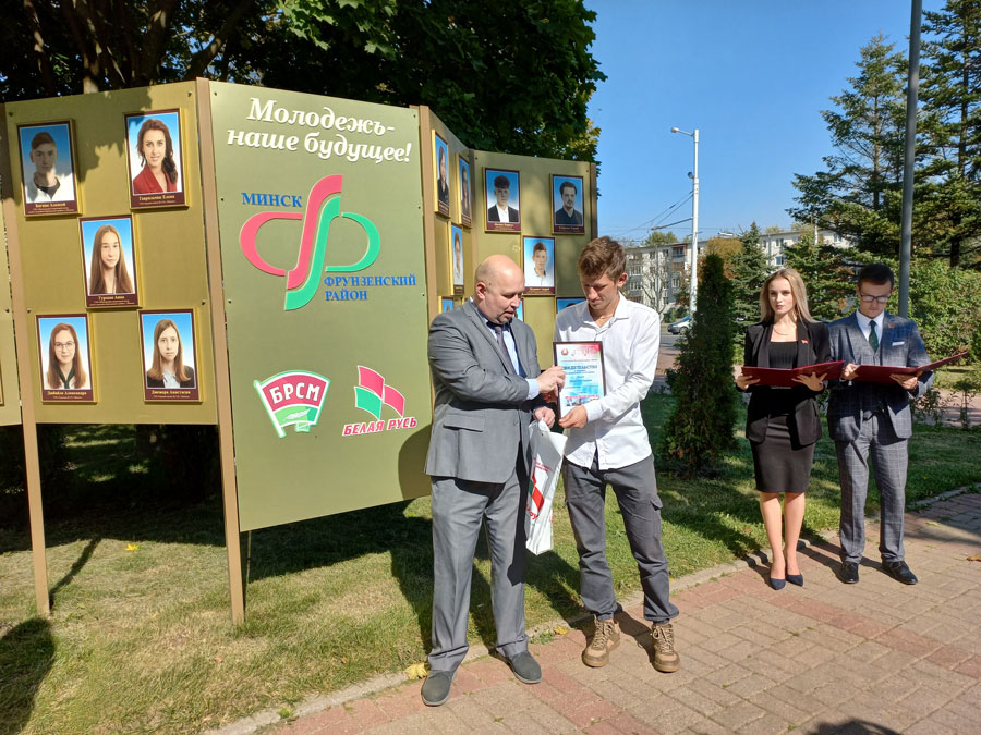 Председатель Фрунзенской «Белой Руси» Игорь Тимашишин поблагодарил молодых людей за их вклад в развитие и процветание родного Фрунзенского района и пожелал им новых успехов, достижений и побед.