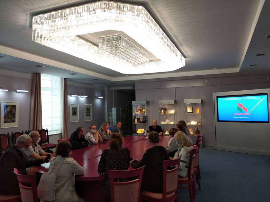 Совет Фрунзенской районной организации г.Минска РОО «Белая Русь» 16 сентября 2021 года пригласил активистов первичных организаций и членов трудовых коллективов ГП «Ремавтодор» и УП «БПОВЦ» в Музей Государственной символики Республики Беларусь. Именно в этом месте собраны документы и материалы, рассказывающие об этапах становления молодой суверенной Беларуси.