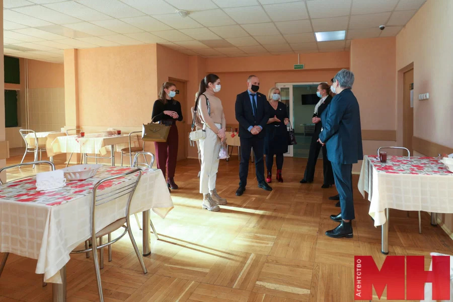 Директор дома-интерната Елена Верниковская рассказалам гостям о работе учреждения. Депутаты Палаты представителей от Фрунзенского района столицы — Мария Василевич, Анна Старовойтова, Василий Панасюк — познакомились с условиями проживания постояльцев. Посетили трудовую мастерскую, столовую, библиотеку, кабинет физиотерапии.