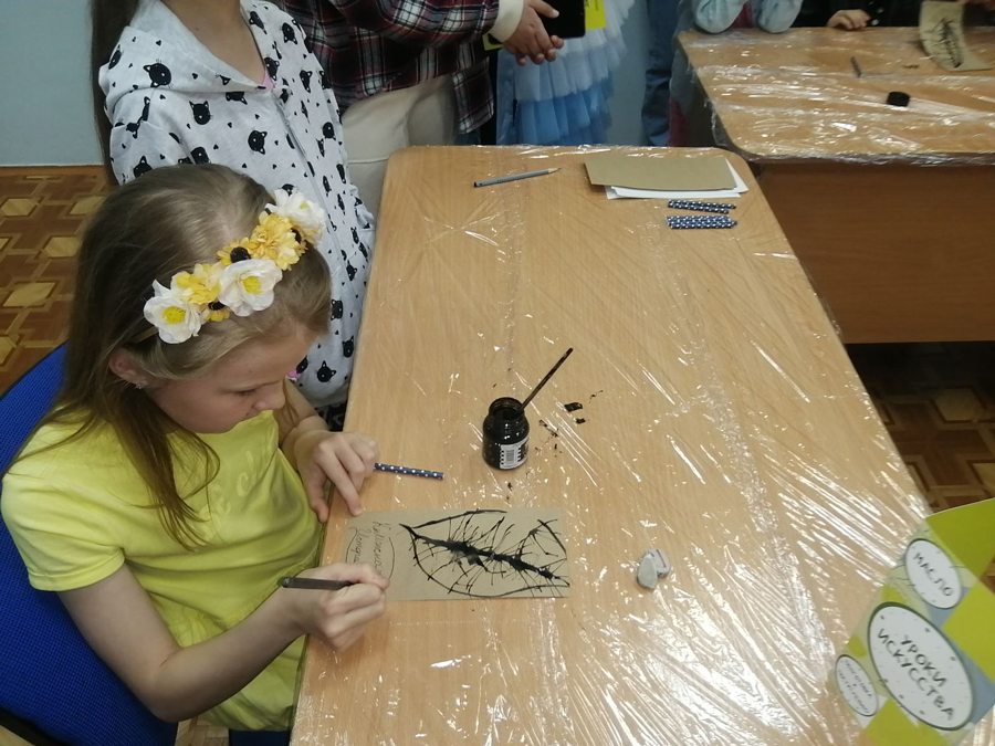 Пока зрители изучали представленные на выставке работы и голосовали за лучшую, для детей прошел небольшой мастер-класс по рисованию тушью.