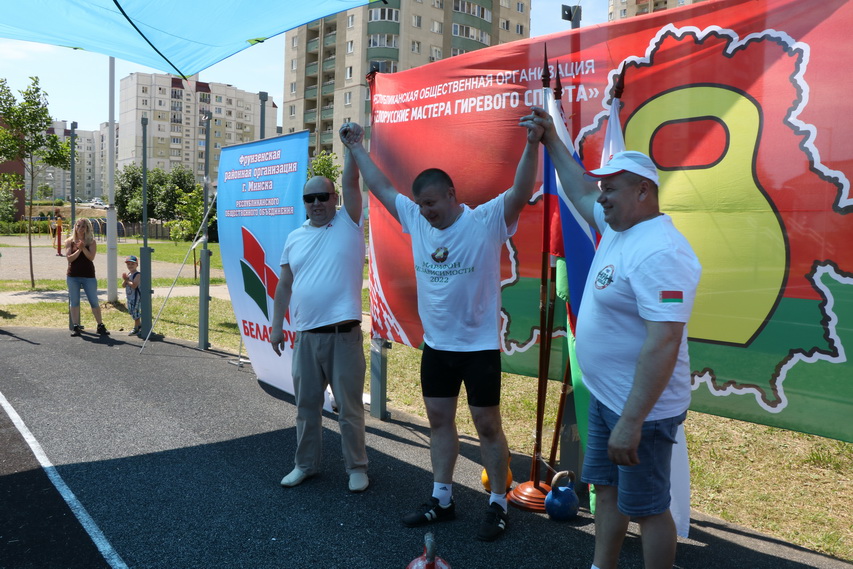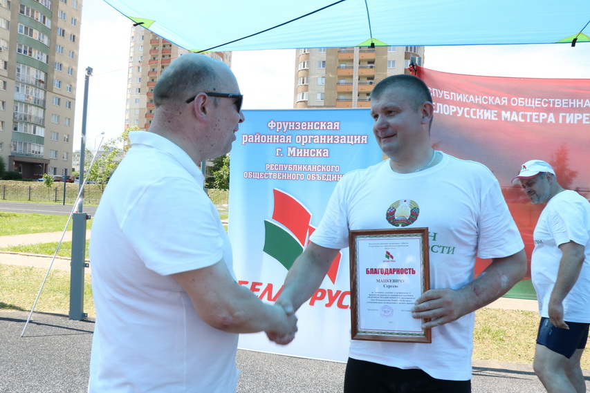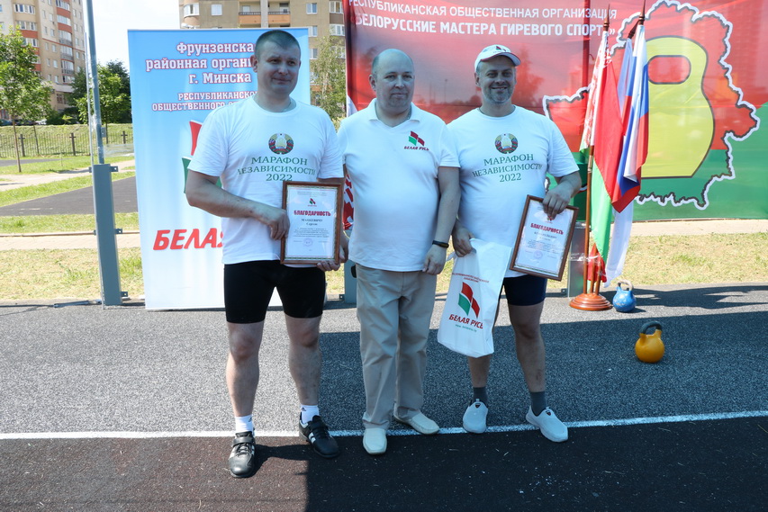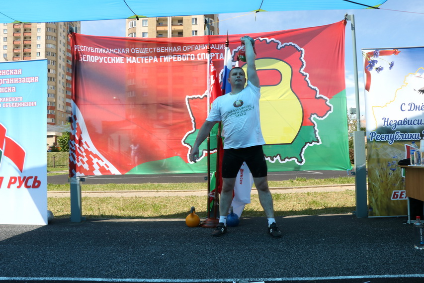 От Беларуси гирю поднимал Сергей Мацкевич — многократный Чемпион и Рекордсмен Мира, Европы, победитель Чемпионатов и Первенств РБ по гиревому марафону. Рекордсмен книги рекордов «Диво», Мастер спорта международного класса по гиревому марафону. Судья Международной категории. Он поднимал гирю в 24 кг 1100 раз за 78 минут: 1100 дней Минска находился в оккупации, а 2022 год — это 78-я годовщина освобождения Беларуси.