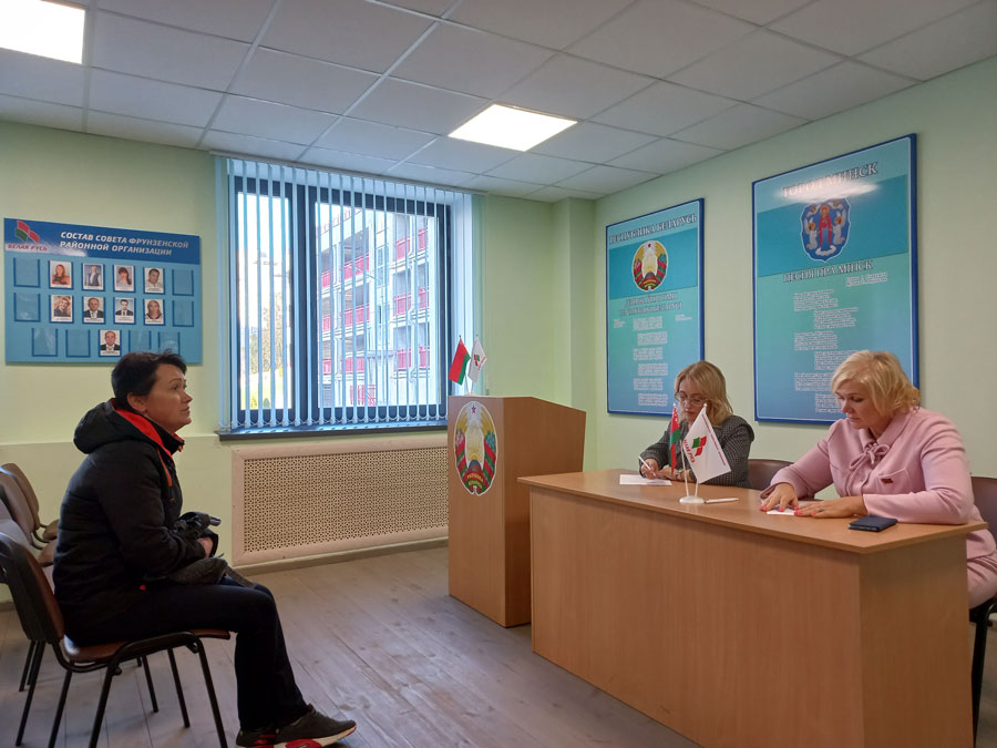 Депутат Палаты представителей Национального собрания Республики Беларусь, депутат по Каменногорскому округу № 101 г.Минска Анна Валентиновна Старовойтова 12 октября 2022 года провела приём граждан в общественной приёмной Фрунзенской районной организации г. Минска РОО «Белая Русь» по адресу: ул.Скрипникова, 62.
