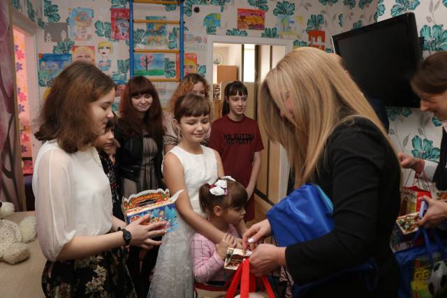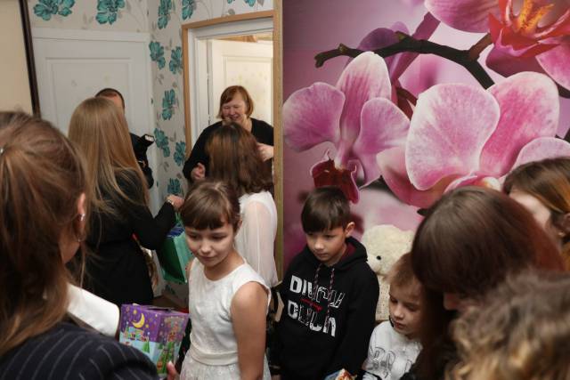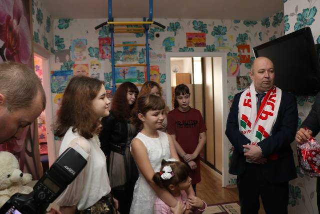 В канун Рождества члены Совета Фрунзенской "Белой Руси" вместе с представителями администрации района и работниками Белгазпромбанка побывали в гостях в детском доме семейного типа. Родители-воспитатели Елена и Алексей Махины воспитывают 13 детей.