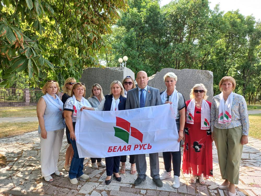 Активисты Фрунзенской районной организации провели скорбный митинг у монумента памяти жертв минского гетто.