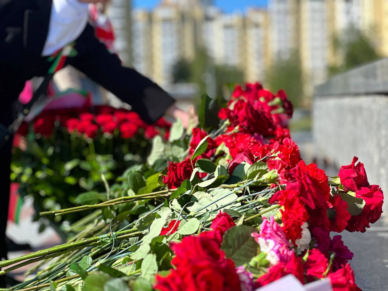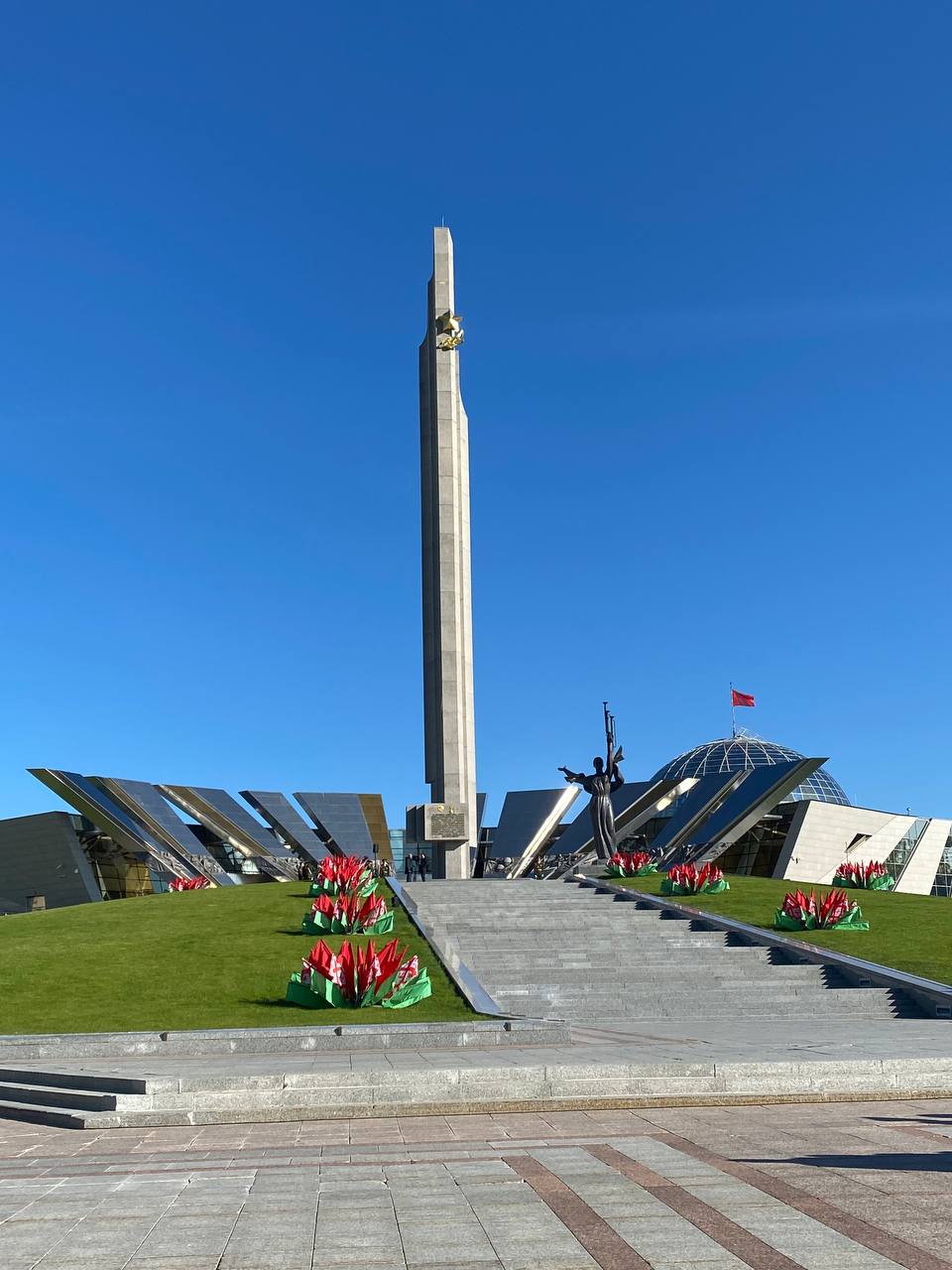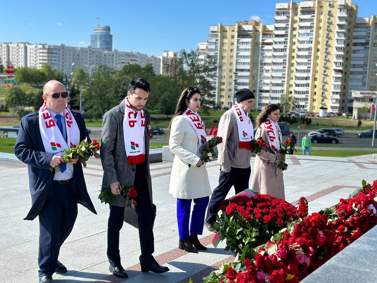 Минская городская и районные структуры РОО «Белая Русь» возложили цветы к стеле «Минск — город-герой» в канун Дня Победы