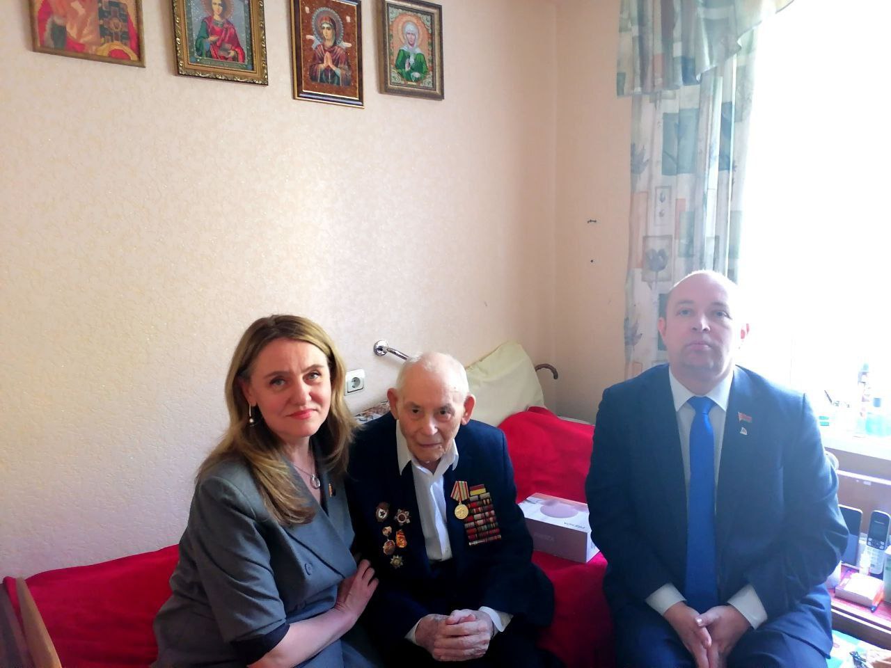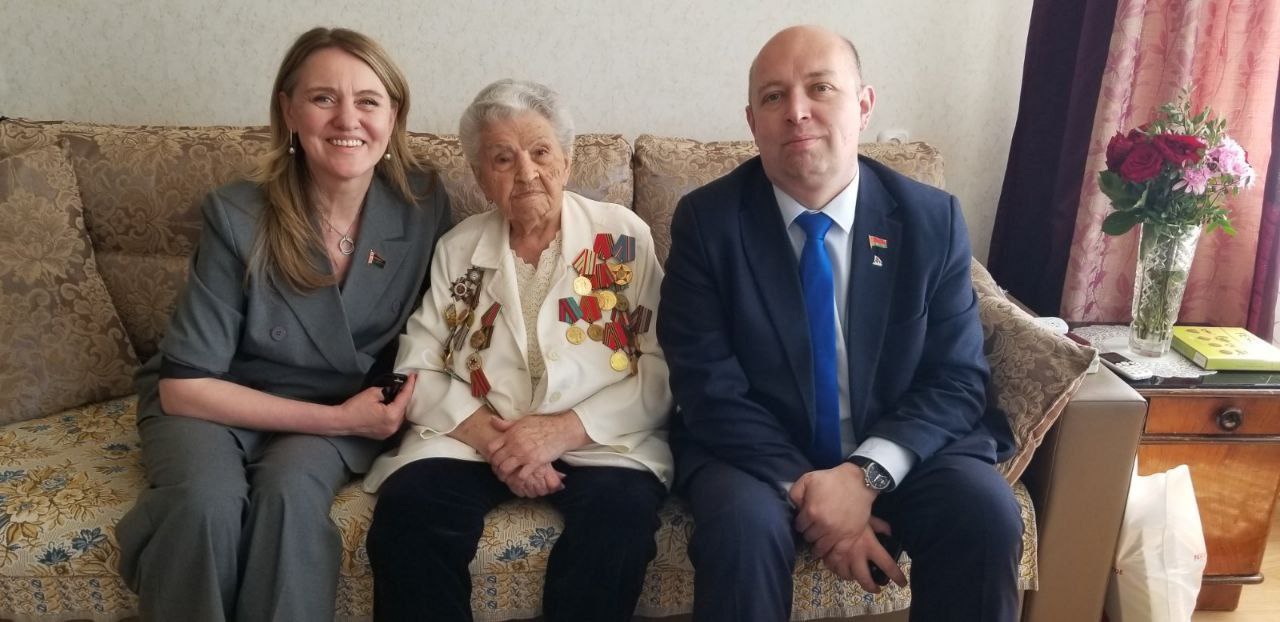 В преддверии празднования 79-й годовщины Победы в Великой Отечественной войне депутат Палаты представителей Национального собрания Республики Беларусь Марина Ленчевская и представители Фрунзенской «Белой Руси» чествовали ветеранов Великой Отечественной войны Лихошерста Ивана Константиновича и Пацук Евдокию Савельевну.