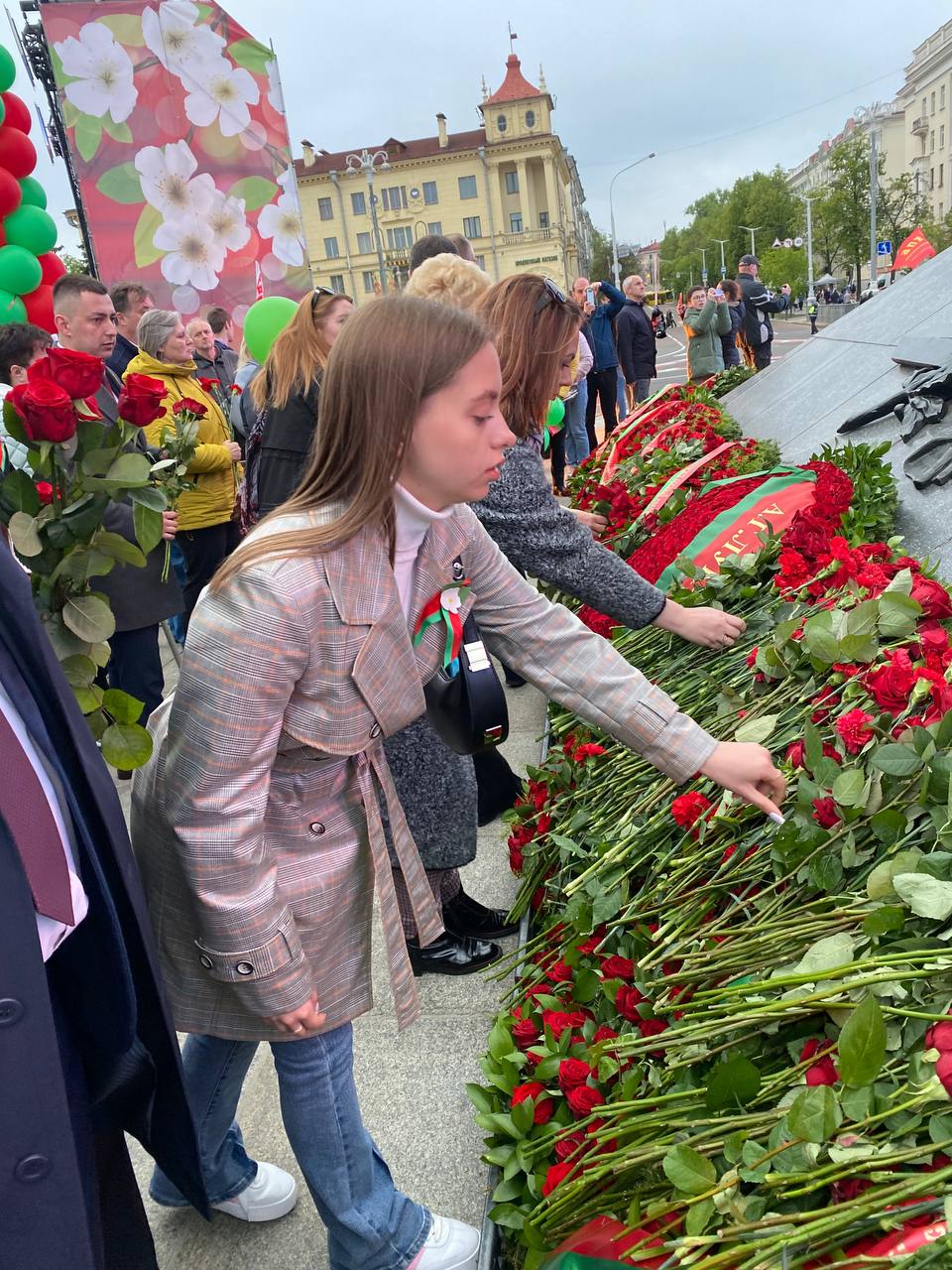 После памятного митинга состоялось народное возложение, где делегация нашего района возложила цветы к монументу Победы и почтила память тех, кто ковал Великую Победу.